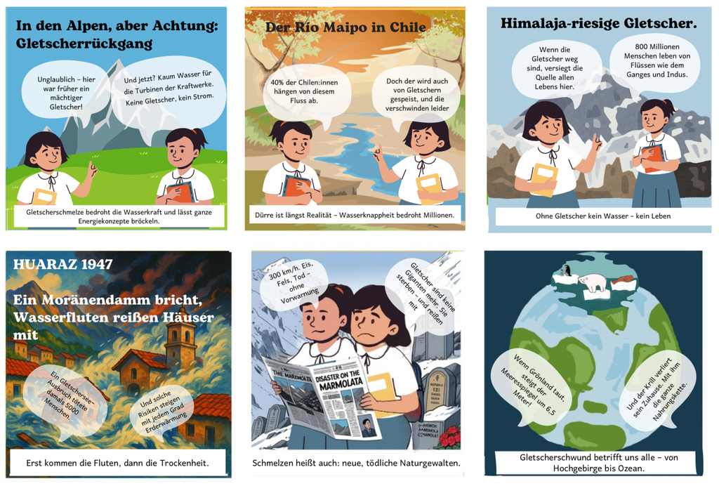 Der Gletscherschwund macht das abstrakte, große und viel diskutierte Thema „Klimawandel“ greifbar. Durch das Betrachten und Vergleichen von Fotos oder das Besuchen von Gletschern direkt vor Ort sind die Auswirkungen des Klimawandels zu sehen.