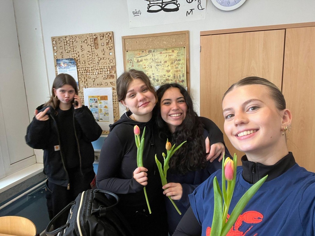 In der Schule ist es für die beiden fast genauso, wie in Chile. Nur, dass hier die Pausen weniger, aber länger sind. Schuluniformen gibt es bei uns auch nicht. Die Austauschschülerinnen denken jedoch, dass eine Uniform es leichter macht, sich morgen anzuziehen. Außerdem darf man hier nicht im Unterricht essen.