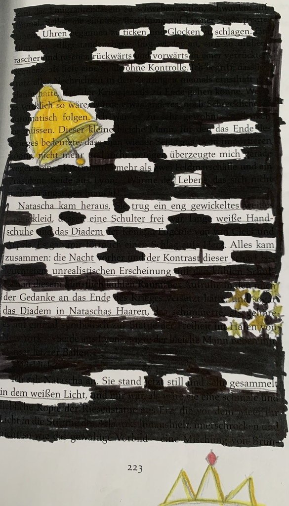 auf – Ich blicke auf und sehe ihr rotes Haar.
